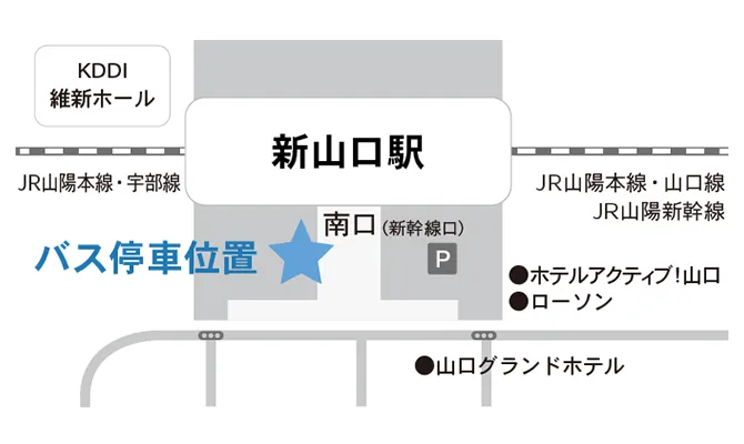 新山口駅と本学の間で、無料シャトルバスを運行しています。