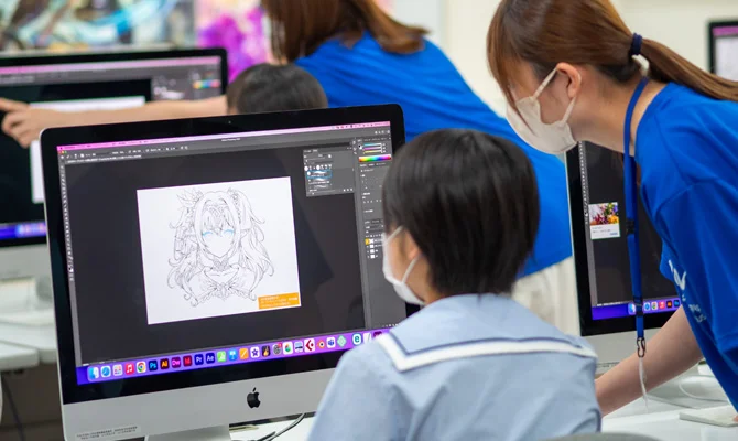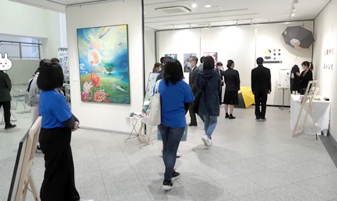 デザインPC室、造形室、音楽練習室、学生作品の展示コーナー、図書館などをご案内します。