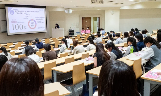 保育学科の紹介や、入試・奨学金・就職状況など、学びの支援やサポートについてもご説明します。