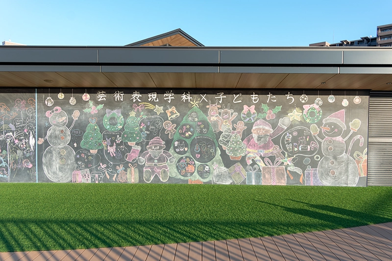 【創造交流】巨大黒板アートに挑戦し、来場者と一緒にクリスマスの風景を描き上げました。