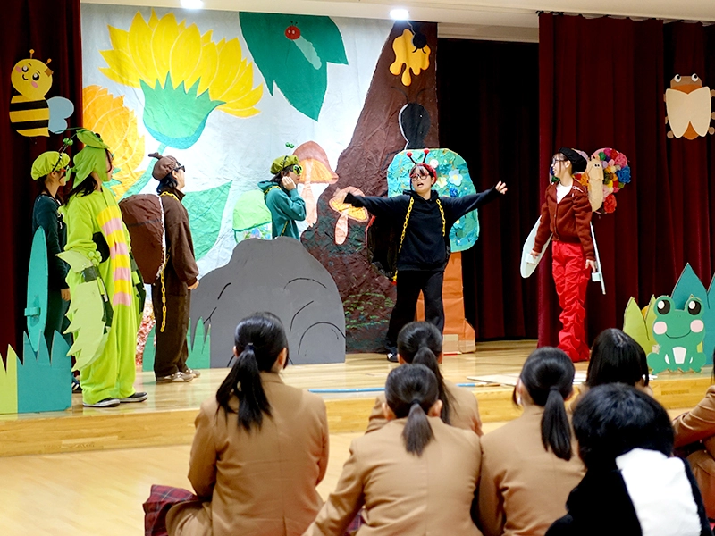 特に、「子ども総合研究(学内発表)」では、『虫のひ・み・つ(創作劇:虫)』と『日本の一年まるごと大冒険(創作劇:日本文化)』、『においのまほう(創作劇:におい)』を観覧してもらいました。各発表の内容を楽しむとともに、先輩方の一生懸命な姿に感動していたようでした。この観覧をとおして保育関係に少しでも興味を持ってくれることを期待しています。