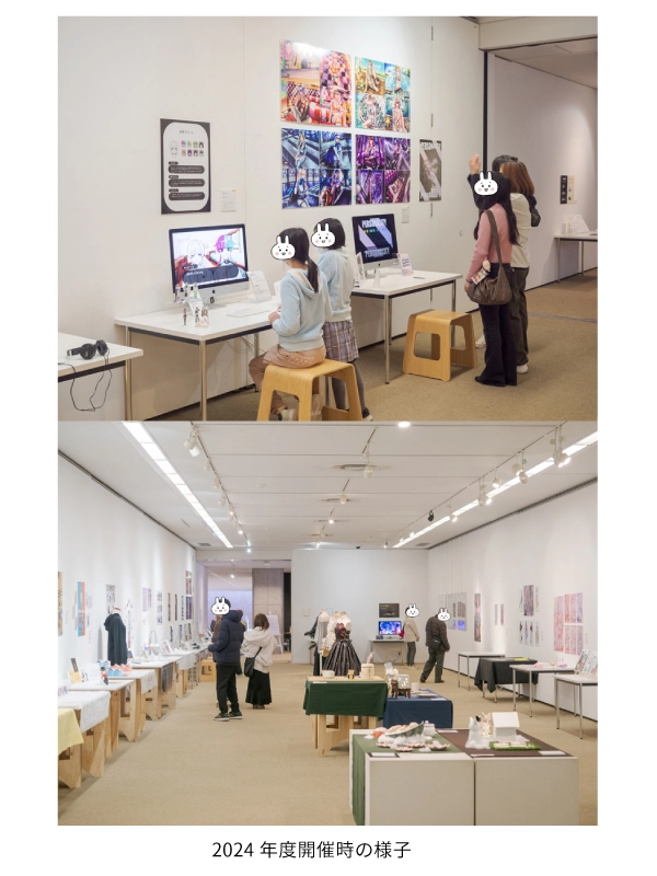 芸術表現学科2年生・専攻科生がデザイン・絵画・陶芸・イラスト・動画の作品制作や、ビジネスに関する研究など、各自がテーマを決めて卒業・修了研究に取り組んできました。