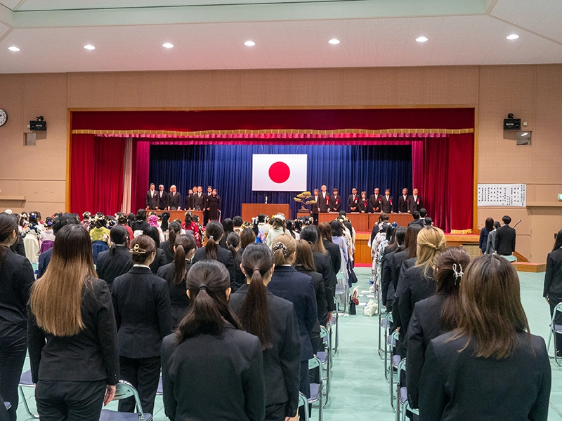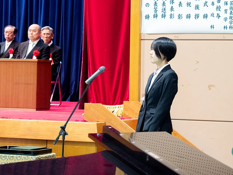 3月18日(水)、本学体育館にて挙行され、保育学科64名、芸術表現学科37名、専攻科3名 合計 104名が新たな門出を迎え、それぞれの思いを胸に巣立っていきました。