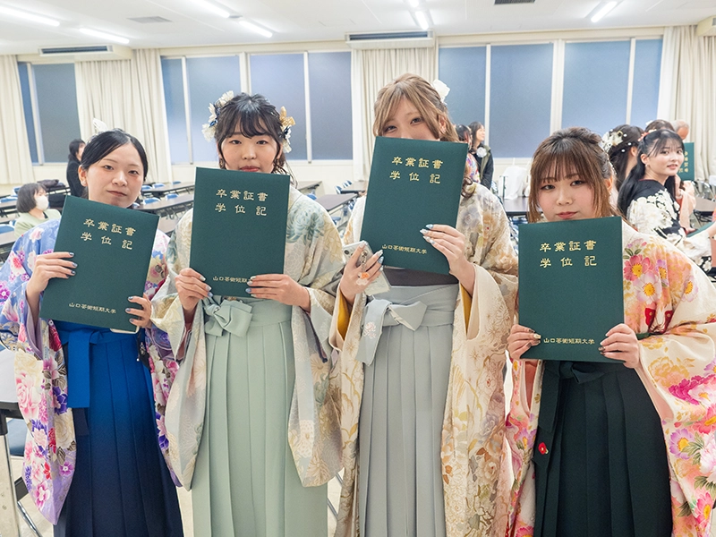 少し肌寒さが残り、春の光を待ち遠しく感じられる中、式では岡村康夫学長からの式辞、続いて学校法人宇部学園の二木寛夫学園長をはじめ、ご来賓の皆様より祝辞をいただきました。