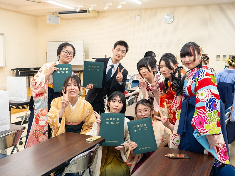 式後の友達同士での記念撮影では袴姿と笑顔が眩しく、きっと忘れられない思い出となったことでしょう。