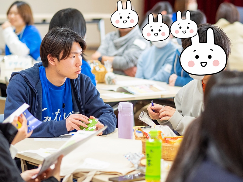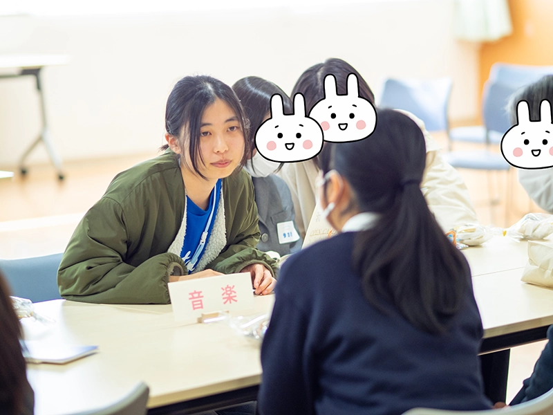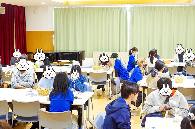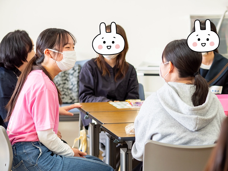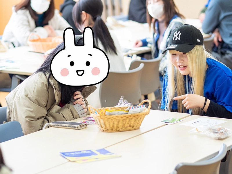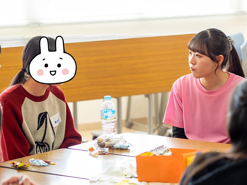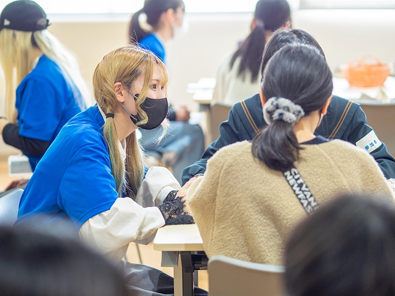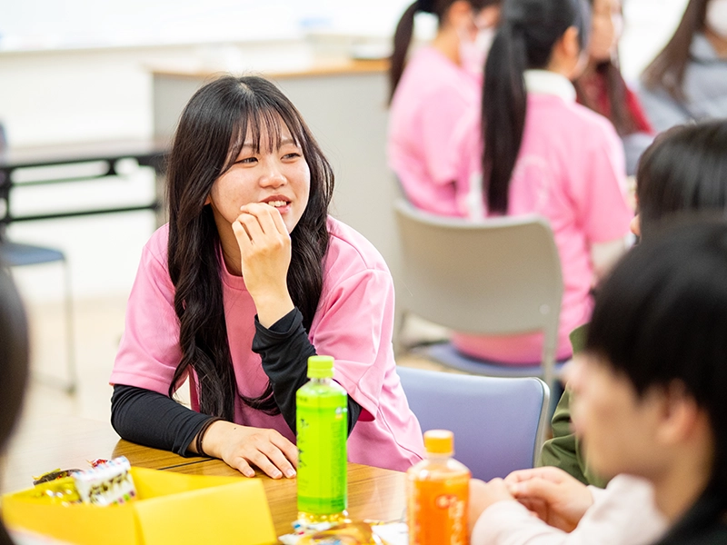 後半の交流会では、両学科とも駄菓子を食べながら、学生生活や授業、アルバイトのことなどの話で盛り上がっていました。中には昨年エントリー式総合型選抜を受けた在学生に、いろいろと相談をしていた高校生もいたようです。