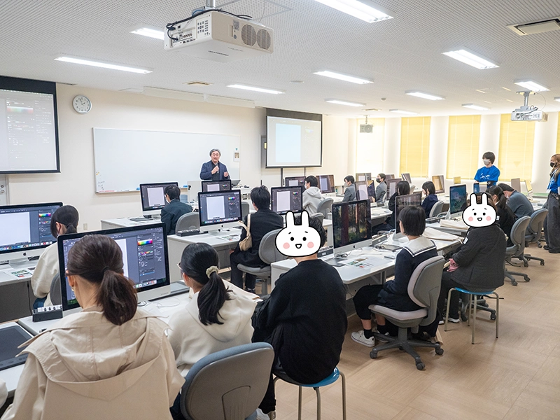芸術表現学科でも、「ウエルカム・コンサート」が行われました。「地域をデザインするビジネス」では地域の魅力を見つけて、人と人を繋ぐビジネスのカタチを体験してもらいました。「グラフィックデザイン入門」ではiMacでイラストレーター等を使って画像編集に挑戦してもらいました。「音階の不思議partⅤ」ではドレミファソって何?をテーマにした学び体験でした。どの学び体験も、笑顔があふれ、楽しそうに取り組んでいたようです。